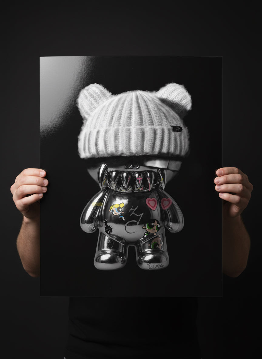 Bio: SB is named after the Spongebob episode “SB-129” Because of her chrome appearance. She loves The Powerpuff Girls because she embodies both Bubbles and Buttercup, sweet on the inside and hard on the outside. She is the only metal J3LLY BEAR in the family. ❤️